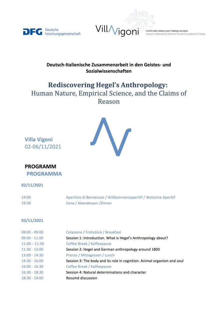 Workshop: Rediscovering Hegel’s Anthropology: Human Nature, Empirical Science, and the Claims of Reason (Como, November 2-6 2021)